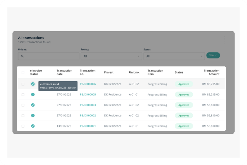Automate unit sales invoicing and progress billing. Stay LHDN-compliant.